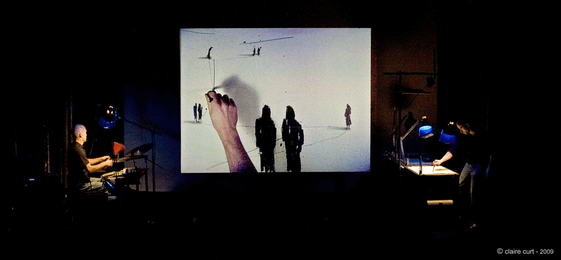 Der bildende Künstler und der Musiker lassen uns in einen bewegten Comicstreifen eintauchen, mit Zeichnungen, die lebendig werden. Die Zeichnungen werden im Entstehen live auf eine Riesenleinwand übertragen – so wird der Zuschauer zugleich Zeuge der Filmkulissen und des graphischen und klanglichen Ergebnisses. Die vielen raffinierten Kniffe und Überraschungen sorgen für großes Vergnügen.