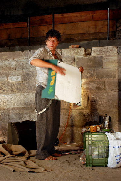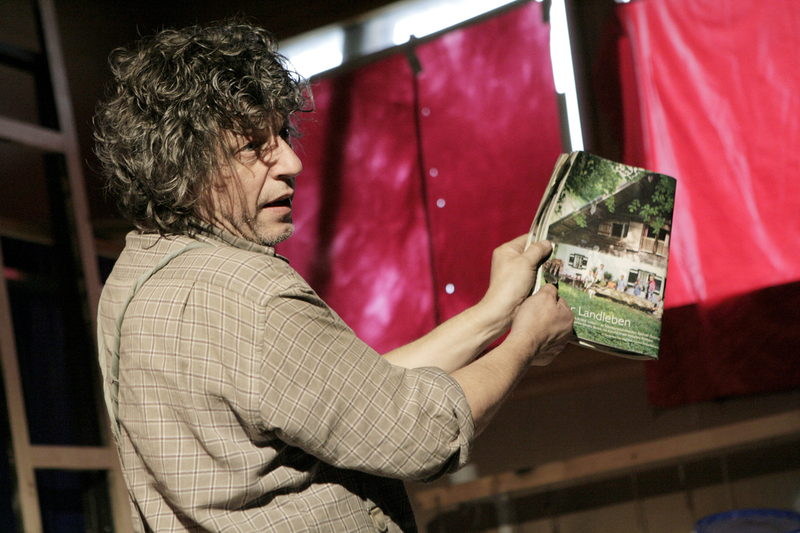 Beim Erwachen beginnt der Landstreicher eine Geschichte zu erzählen. Eine Geschichte vom Aufbruch, von Wünschen, Hoffnungen und Enttäuschungen. Vor den Augen des Publikums lässt er einen Bauernhof entstehen, mit einem Bauern, der seine Felder bestellte und die Tiere versorgte. Der mit dem Traktor in die Stadt fuhr, die Frau seines Herzens traf und eine Familie gründete. Das Glück schien perfekt. Doch so, wie das Idyll aus dem Nichts entstand, so löst es sich am Ende wieder auf.